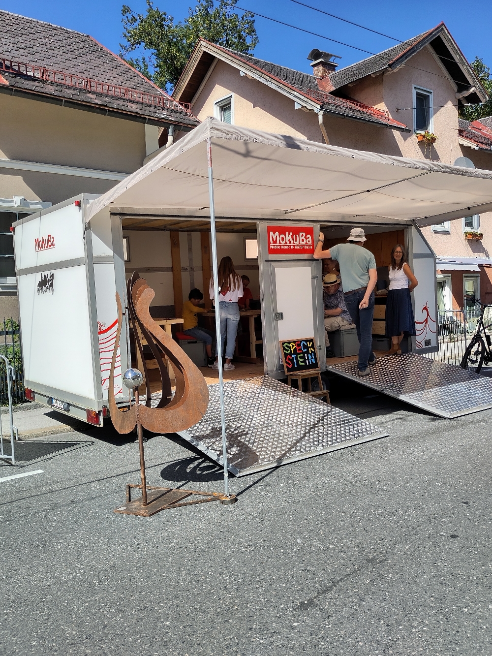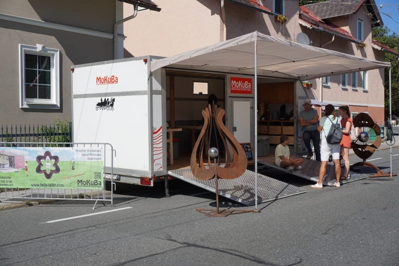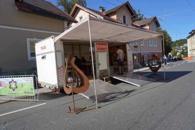 MoKuBa ist ein innovativer, mobiler Kunstraum, der in einem PKW-Anhänger (6 x 2,5 m) untergebracht ist. Mit zwei seitlichen Klappen verbindet der Anhänger Innen- und Außenraum und eröffnet vielfältige Gestaltungsmöglichkeiten. Diese Klappen können als Rampe oder Bühne genutzt werden, was eine kreative Basis für eine breite Palette von Kunst- und Kulturprojekten schafft.